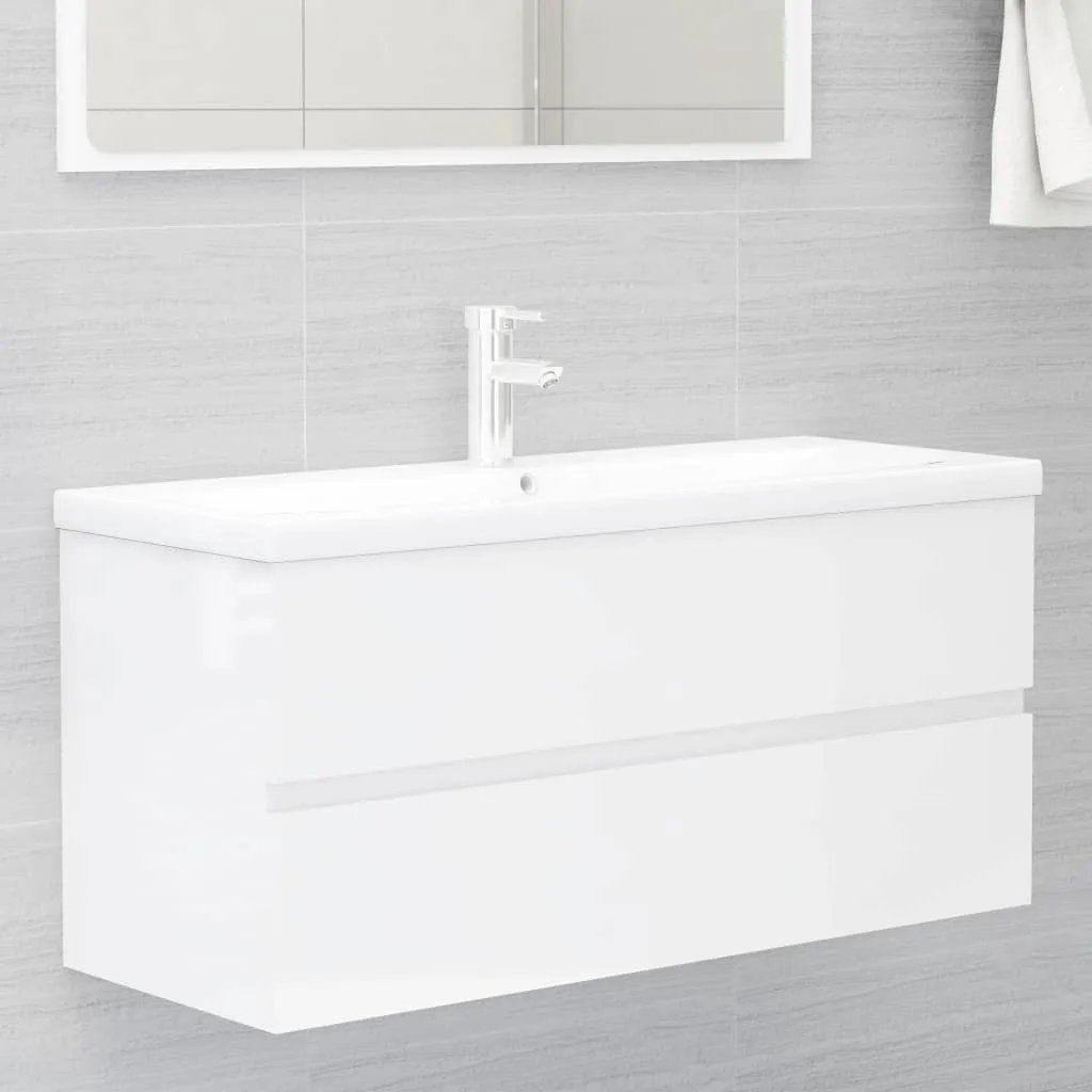 Dulap cu chiuvetă încorporată, alb extralucios, lemn prelucrat
