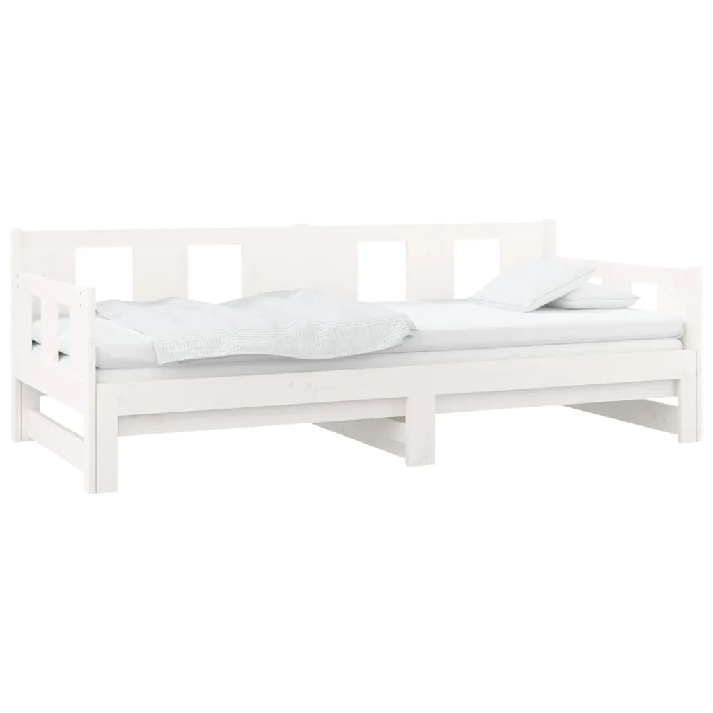 Pat extensibil de zi, alb, 2x(80×200) cm, lemn masiv de pin