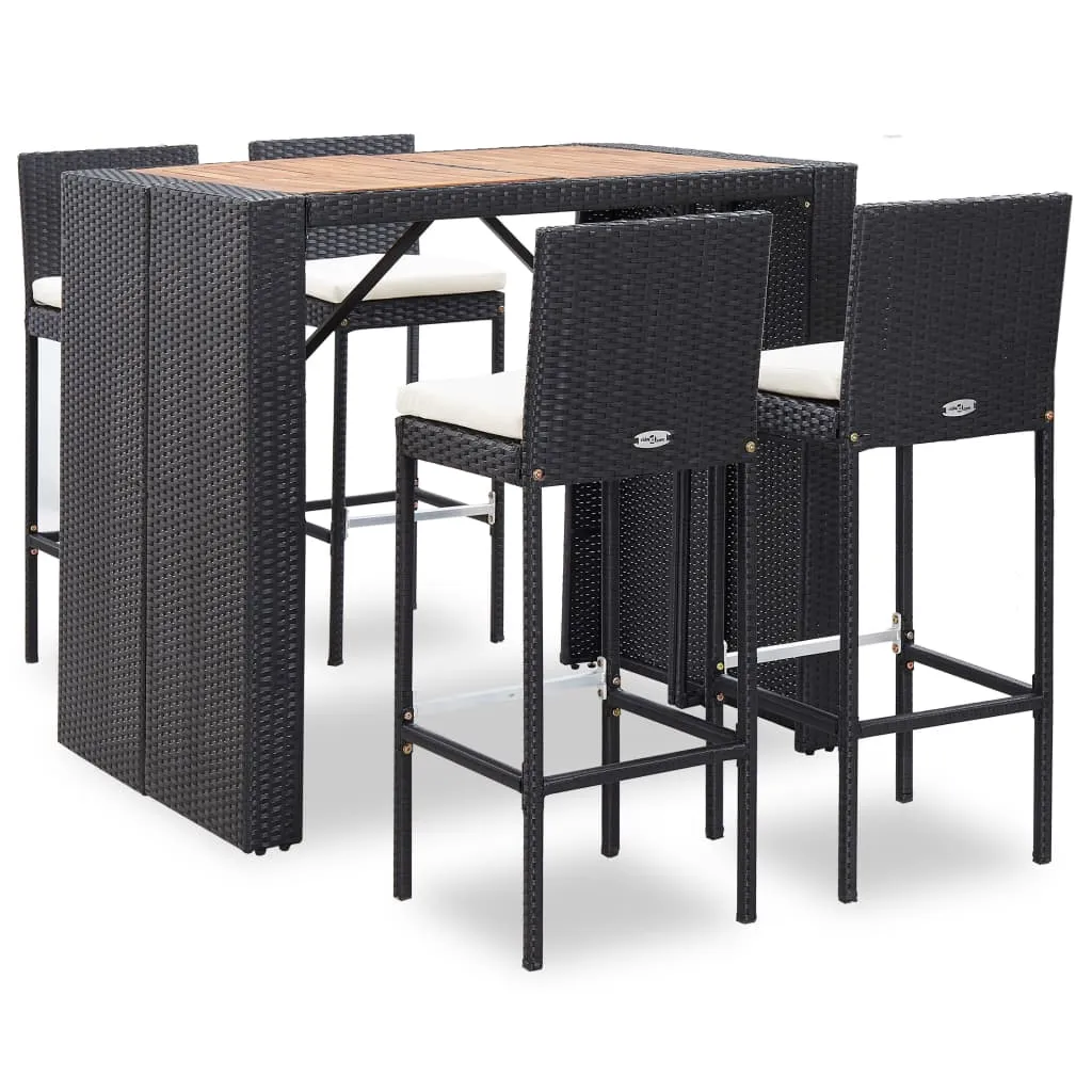 Set mobilier de exterior 5 piese, negru, poliratan, lemn acacia