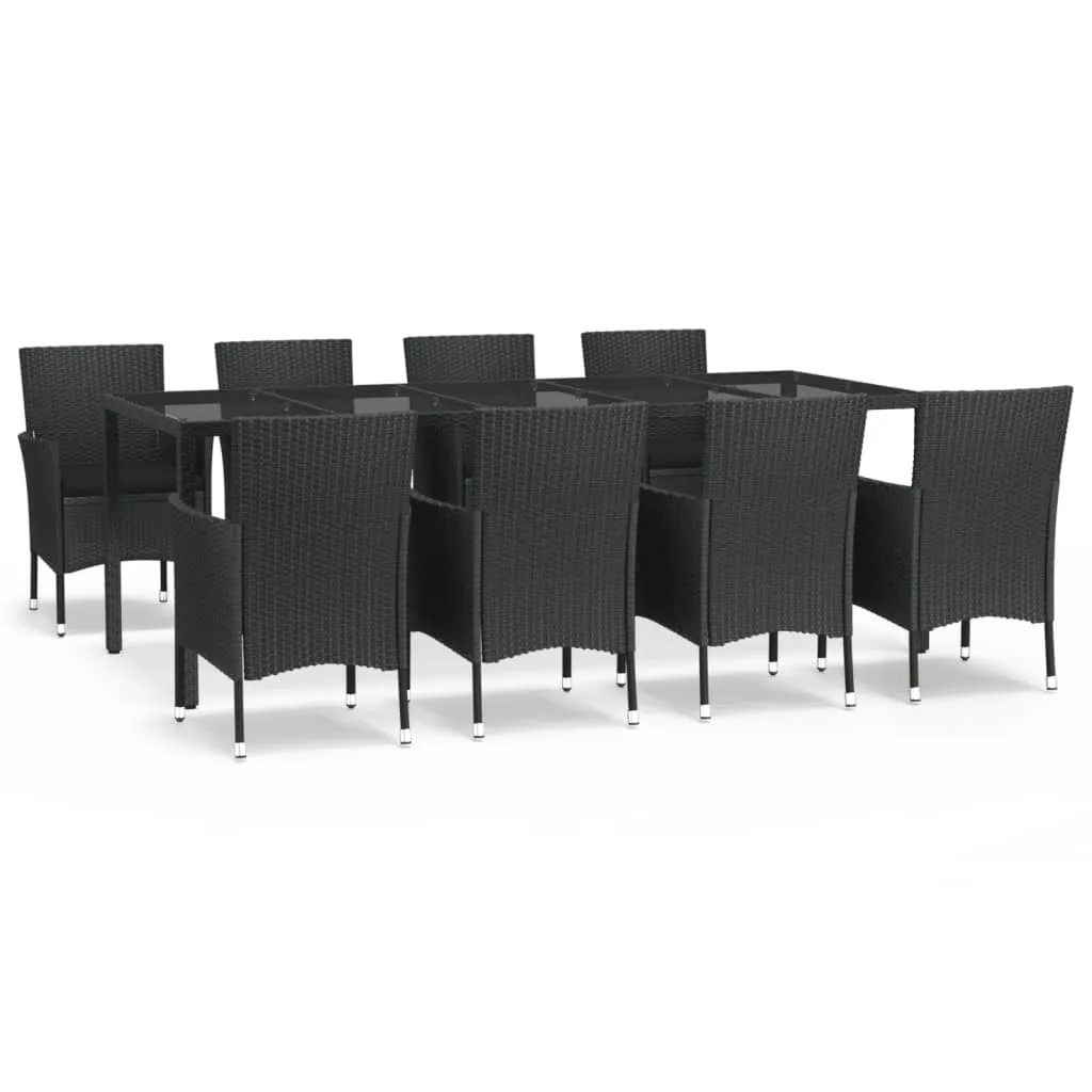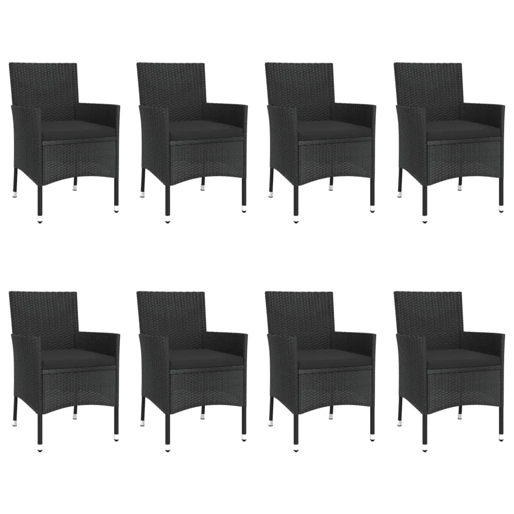 Set mobilier de grădină cu perne, 9 piese, negru, poliratan