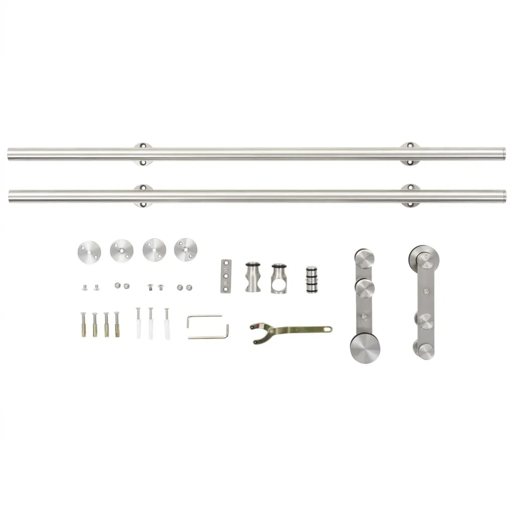 Set piese pentru ușă glisantă, argintiu, 183 cm oțel inoxidabil
