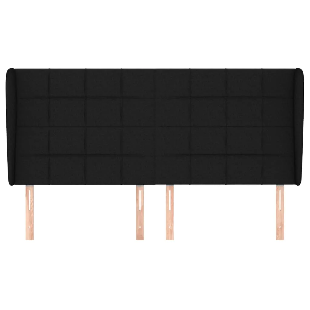 Tăblie de pat cu aripioare, negru, 203x23x118/128 cm, textil