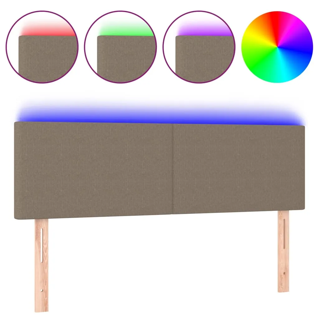 Tăblie de pat cu LED, gri taupe, 144x5x78/88 cm, textil