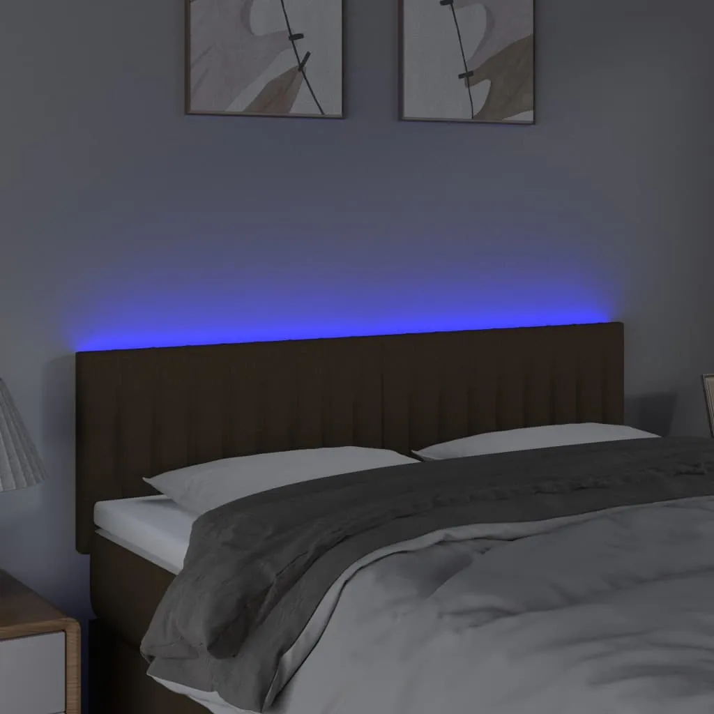 Tăblie de pat cu LED, maro închis, 144x5x78/88 cm, textil