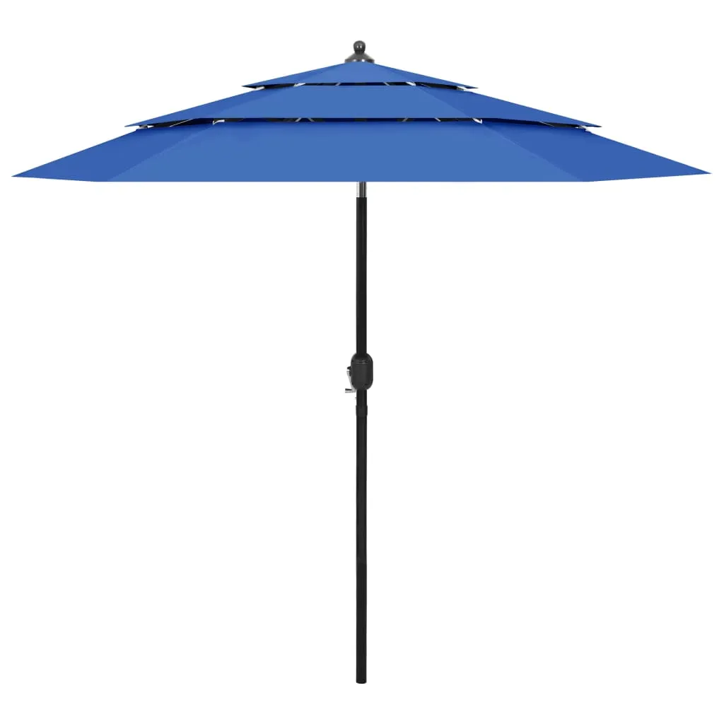 Umbrelă de grădină 3 niveluri, stâlp de aluminiu, azuriu, 2,5 m