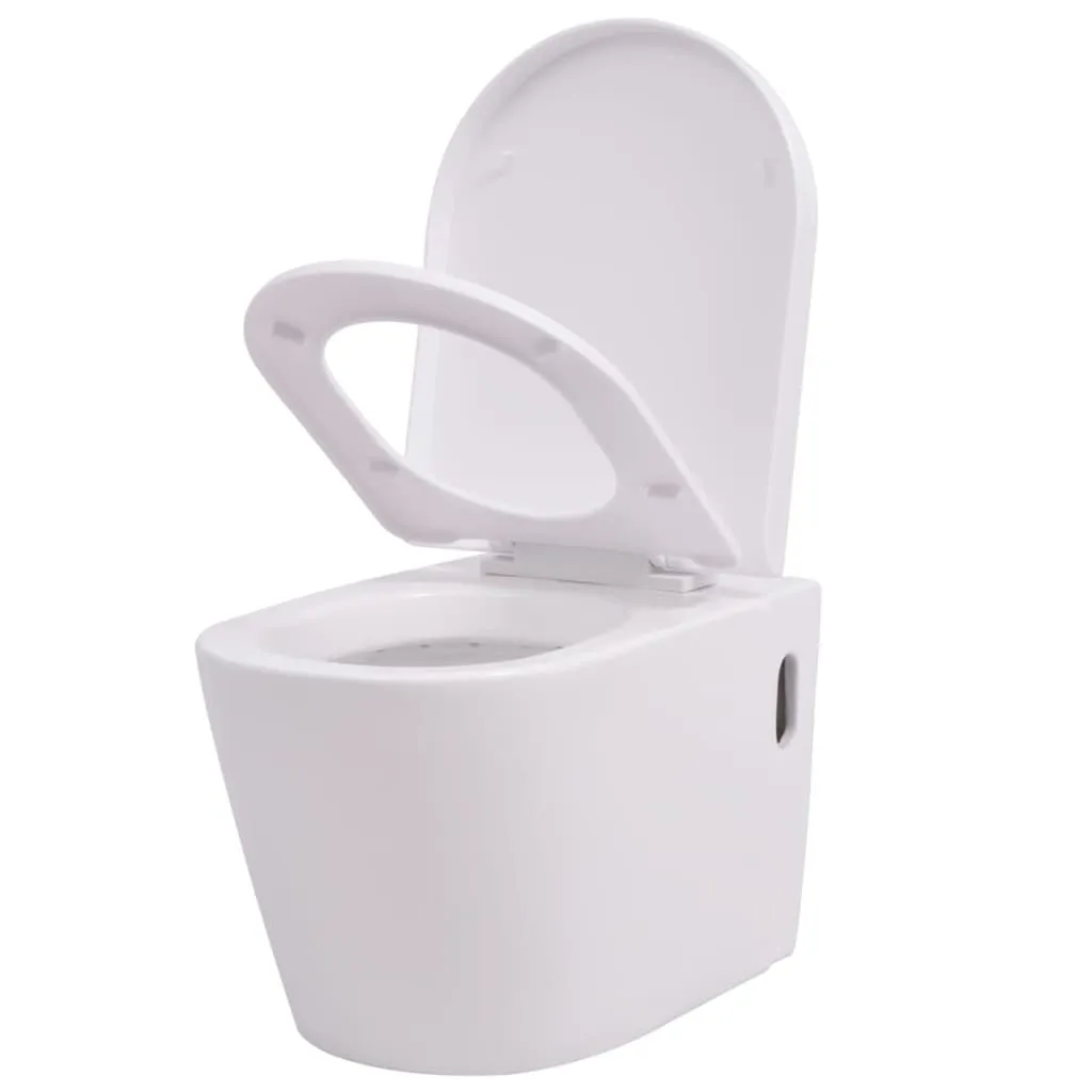 Această toaletă suspendată, cu un design unic și plăcut, dispune de un sistem de închidere ușoară, care permite capacului să se închidă în mod automat, la doar o simplă atingere. Compus dintr-un vas de WC din ceramică și un capac ce necesită întreținere redusă, toaleta suspendată este ușor de curățat. Această toaletă elegantă are un design curbat și un loc de șezut confortabil. Toaleta este ușor de instalat. Livrarea include o toaletă suspendată și un capac cu închidere ușoară. Vă rugăm să rețineți că accesoriile de montaj nu sunt incluse în livrare. Copiii trebuie supravegheați pentru a vă asigura că nu se joacă cu produsul. Țineți copiii departe de zona de asamblare. Atenție: Citiți cu atenție instrucțiunile înainte de utilizare și păstrați-le pentru referințe ulterioare.